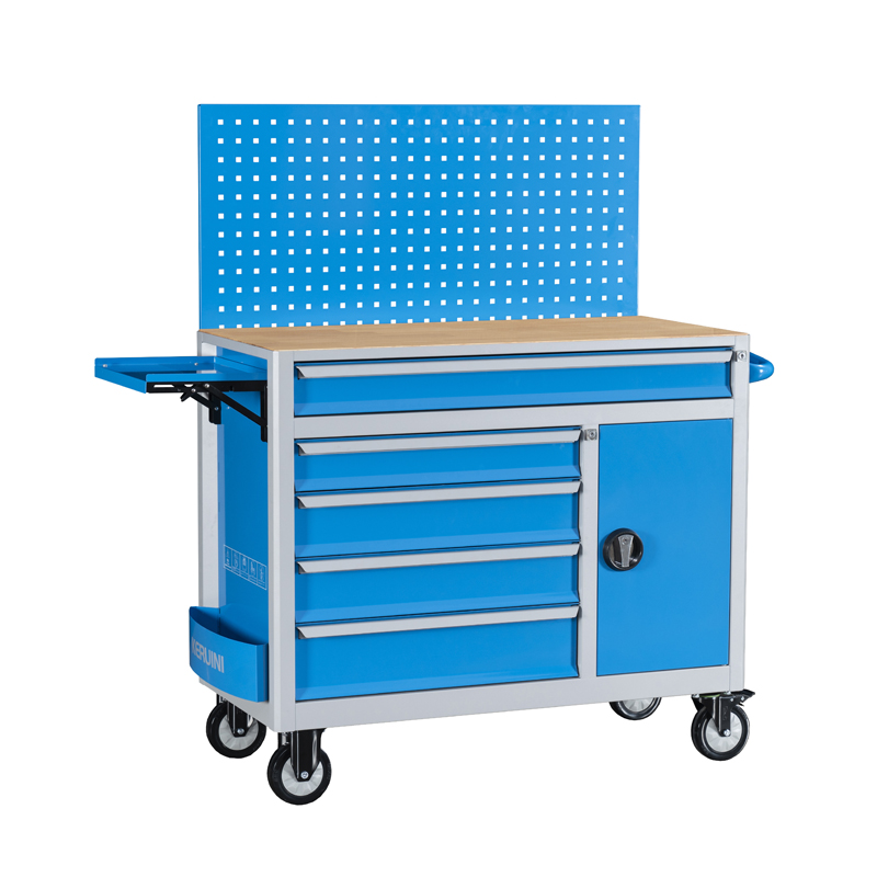 蓝色4抽1门工具车
